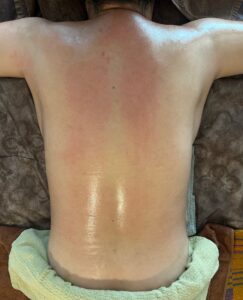 5.軽擦からの施術(背面 背中、足→正面 デコルテ、お腹、足→お顔 耳までしっかり→百会)